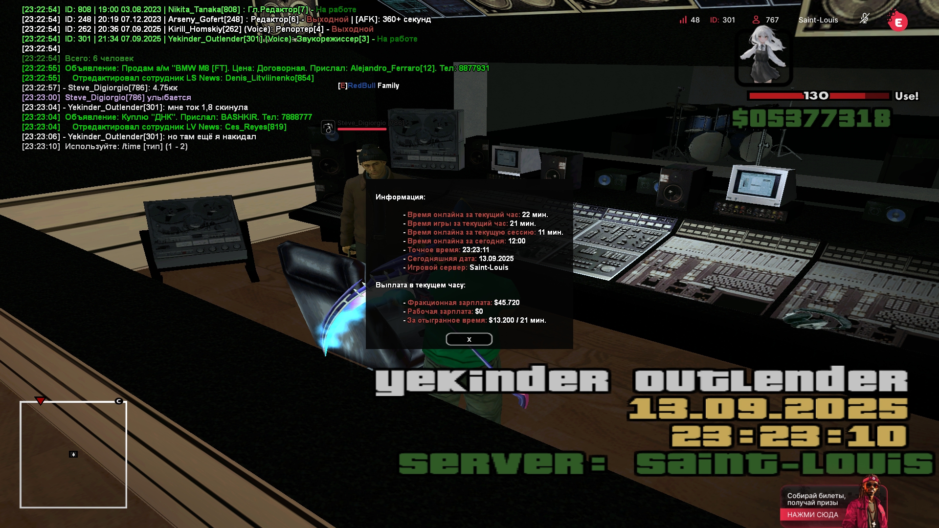 Суточный онлайн — 50.000$ от Yekinder_Outlender [2025-09-13]