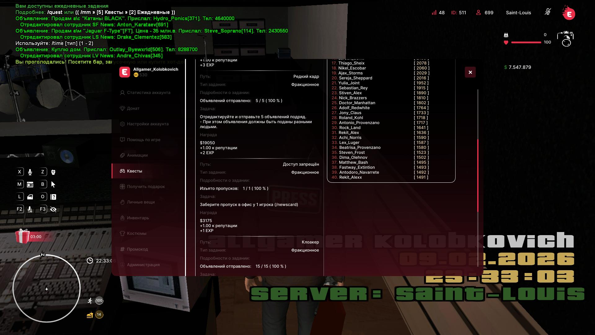 Ежедневный квест — 20.000$ от Allgamer_Kolobkovich [2026-02-09]