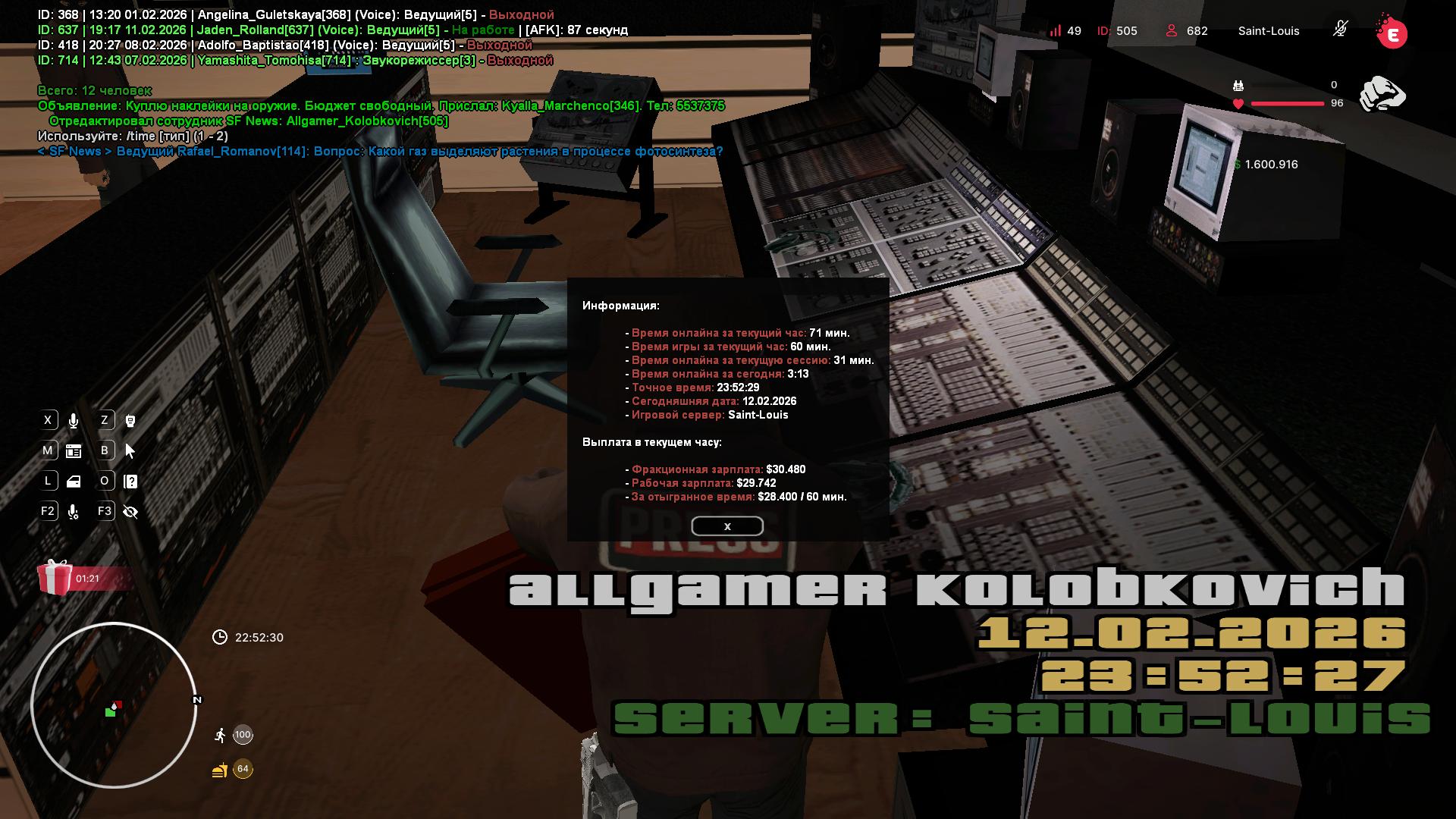 Суточный онлайн — 25.000$ за час от Allgamer_Kolobkovich [2026-02-12]